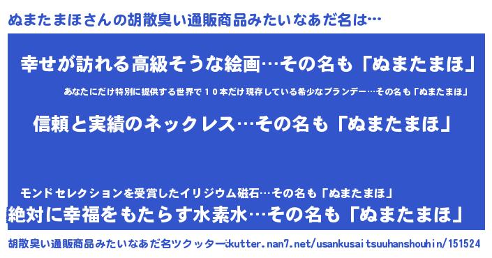 | 意味不明あだ名 | 『とにかく怪しいぬまたまほ』 |