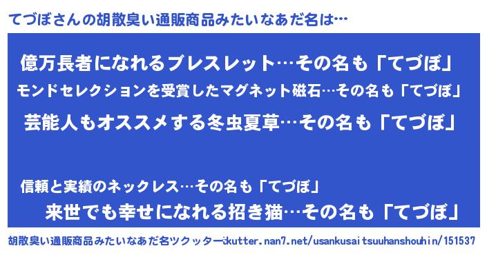 | ヘコむあだ名 | 『てづもー』『てづぼ(小並感)』 |