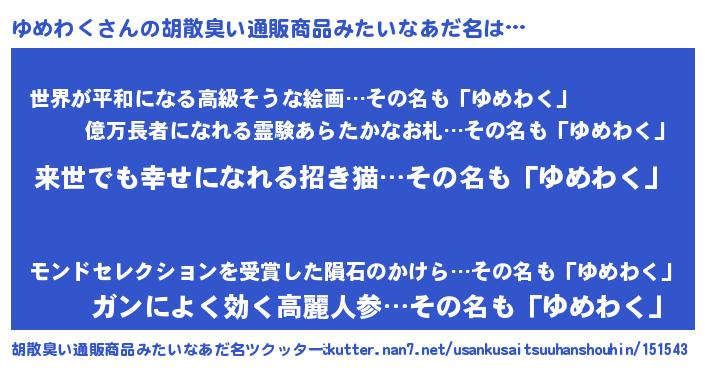 | ヘコむあだ名 | 『ゆめわく(笑)』『牛乳』『ゆめにー』 |