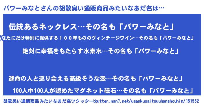 | 意味不明あだ名 | 『永久保存パワーみなと』 |