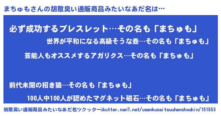 | 意味不明あだ名 | 『自称まちゅも』『ペロリンまちゅも』 |