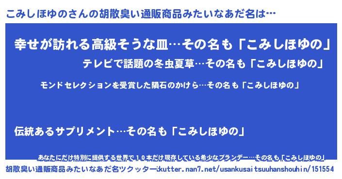 | ヘコむあだ名 | 『レバニラ』『こみっちょ』 |
