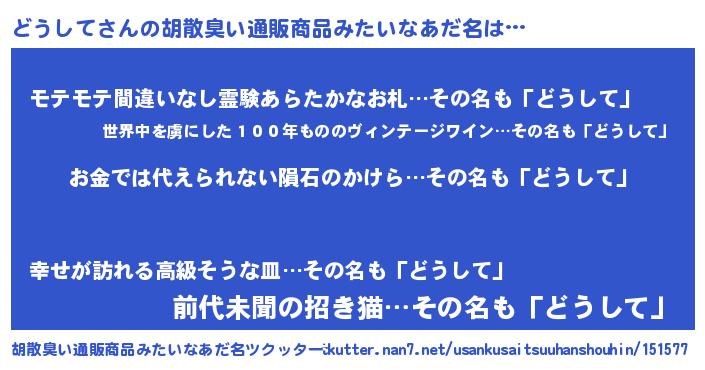 | 男性向けラノベタイトル風あだ名 | 『ノーゲーム・ノードウシテ』 |
