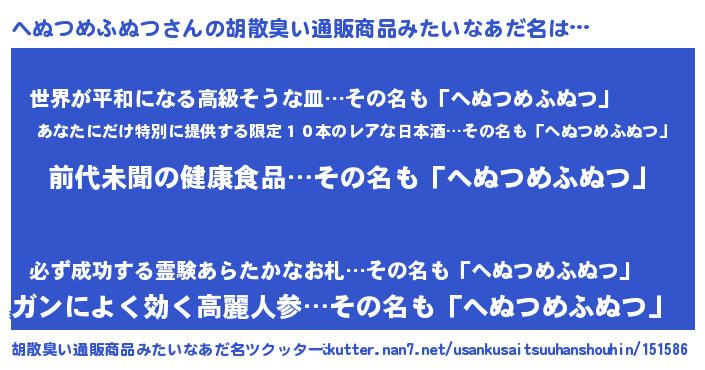 | ヒーロー風カッコイイあだ名 | 『ネオヘヌツメフヌツ』『仮面ヘヌダー』 |