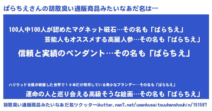 | 欧米人風あだ名 | 『ウサインばらちえ』『ダニエルばらちえ』 |