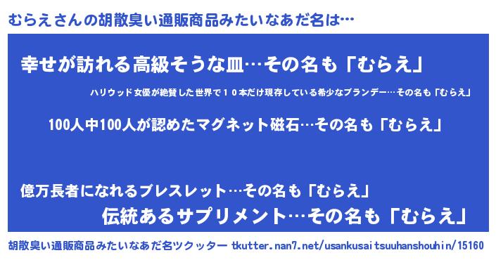 | ヘコむあだ名 | 『つくし』『むら太郎』『むらにゅー』 |