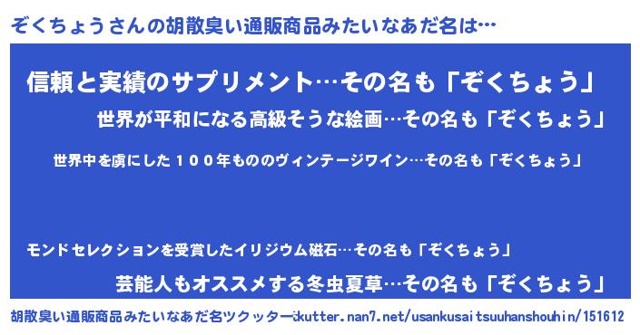 | 男性向けラノベタイトル風あだ名 | 『ぞくちょうに滅ぼされるだけの簡単なお仕事です』 |