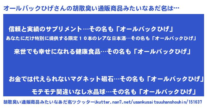 | 意味不明あだ名 | 『永久保存オールバックひげ』 |