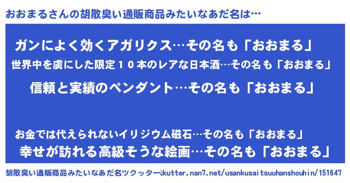 | 意味不明あだ名 | 『とにかく怪しいおおまる』 |