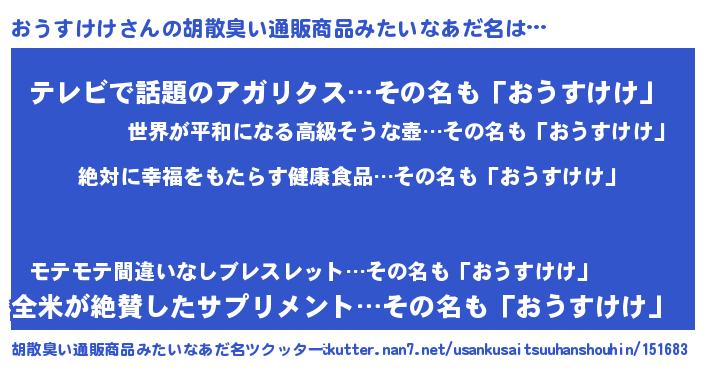| 男性向けラノベタイトル風あだ名 | 『おうすけけという概念が存在しない退屈な世界 』 |