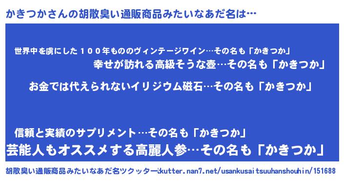 | 欧米人風あだ名 | 『かきつか・ステッグマイヤー』 |
