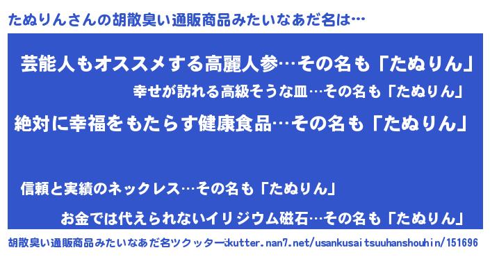 | ヒーロー風カッコイイあだ名 | 『ネオタヌリン』『究極戦士タヌリン』 |