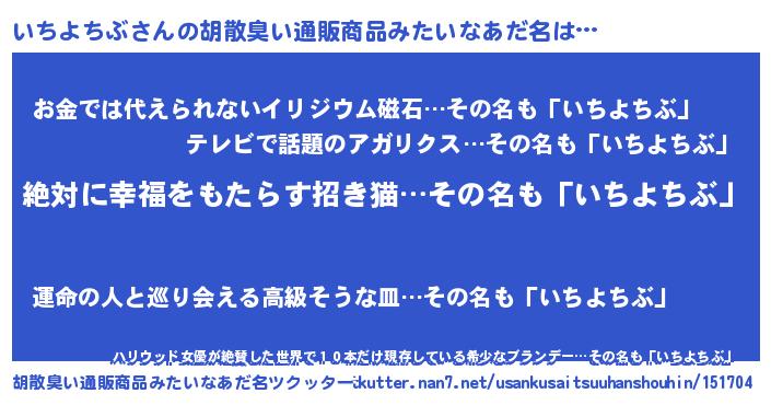 | 意味不明あだ名 | 『永久保存いちよちぶ』『自称いちよちぶ』 |