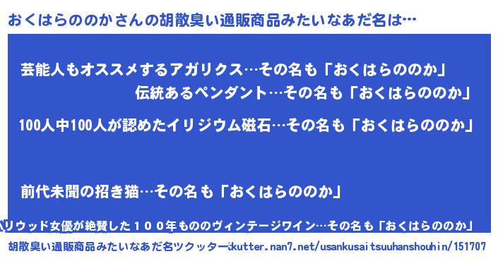 | ヘコむあだ名 | 『おくっ子』『おくはらののか(爆)』 |