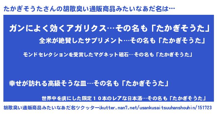 | 意味不明あだ名 | 『眠気覚ましガムたかぎそうた味』 |
