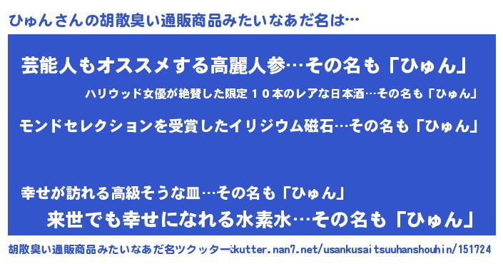 | 意味不明あだ名 | 『ニラ科ひゅん属』『自称ひゅん』 |