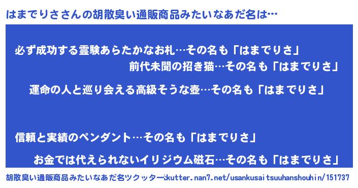 | ヒーロー風カッコイイあだ名 | 『ウルトラはまでりさマン』 |