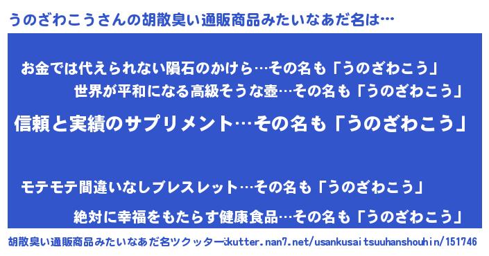 | ヘコむあだ名 | 『うのお』『うのざわこう(苦笑)』 |