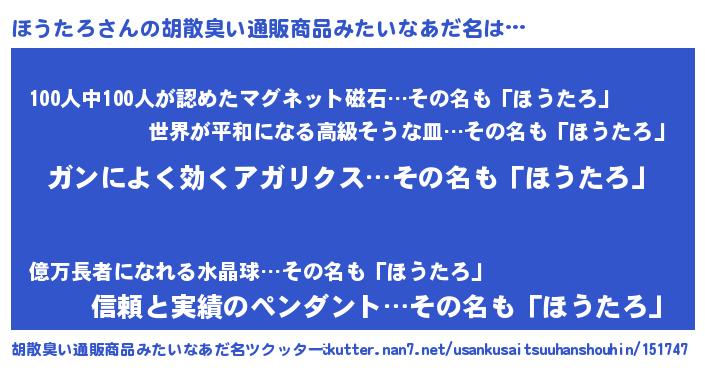 | 欧米人風あだ名 | 『ケンブリッジほうたろ』 |