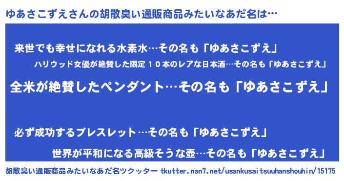 | 意味不明あだ名 | 『とにかく怪しいゆあさこずえ』 |
