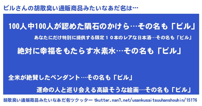 | ヘコむあだ名 | 『ビル(震え声)』『牛乳』『ビル太郎』 |