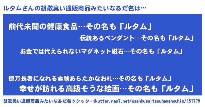 | ヘコむあだ名 | 『ルタム(笑)』『酢こんぶ』 |