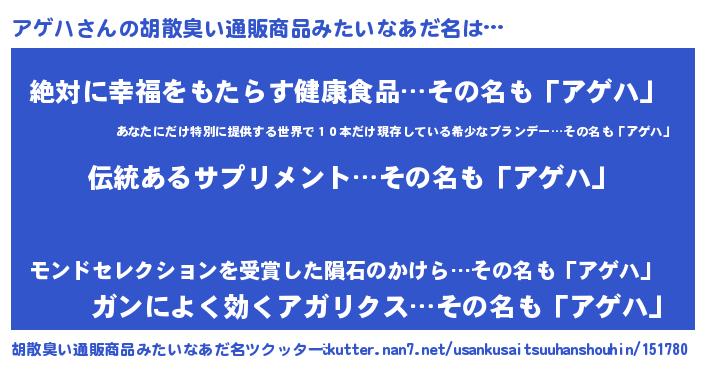アゲハさんの胡散臭い通販商品みたいなあだ名をツクッター!