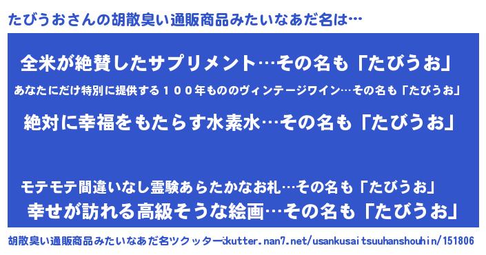 | ヘコむあだ名 | 『たびうお(震え声)』『たびお』 |