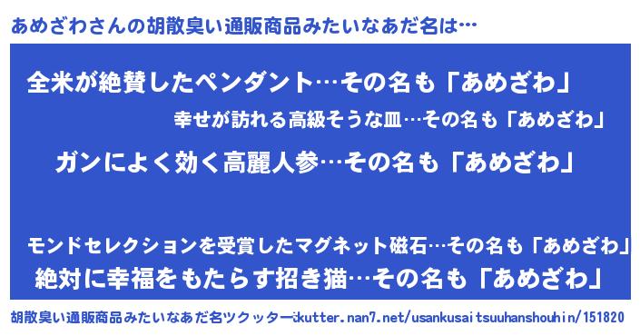 | 意味不明あだ名 | 『自称あめざわ』『永久保存あめざわ』 |