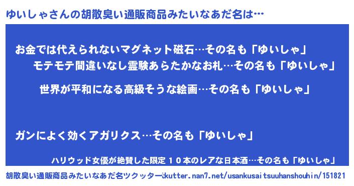 | 意味不明あだ名 | 『ゆいしゃフォーエバー』『自称ゆいしゃ』 |