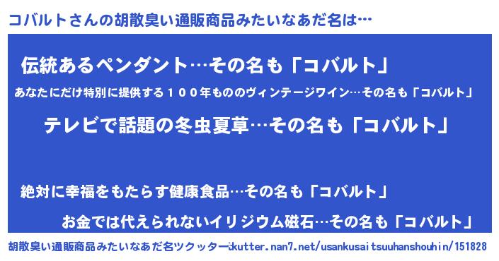 | 女子向けラノベタイトル風あだ名 | 『闇のコバルト』『コバルトは平凡を望む』 |