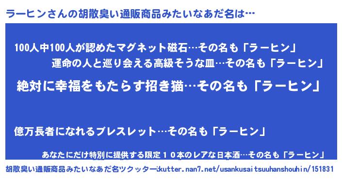 | ヒーロー風カッコイイあだ名 | 『ネオラーヒン』『正義の使者ラーヒン』 |