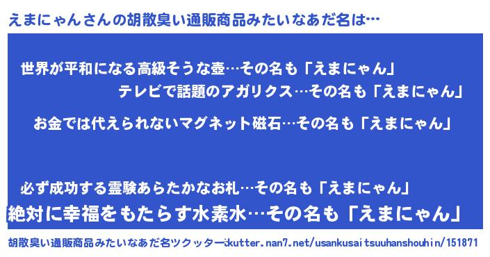 | 意味不明あだ名 | 『なめこ科えまにゃん属』 |