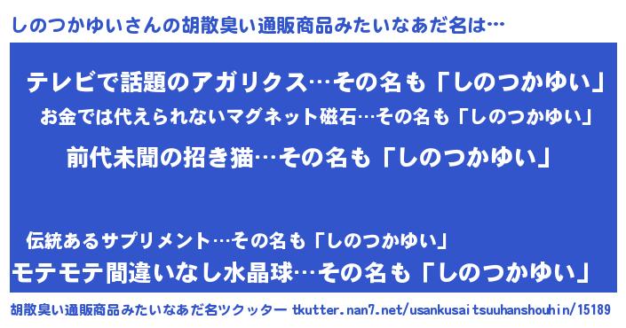 | ヘコむあだ名 | 『しのつかゆい(笑)』『しのにゅー』 |