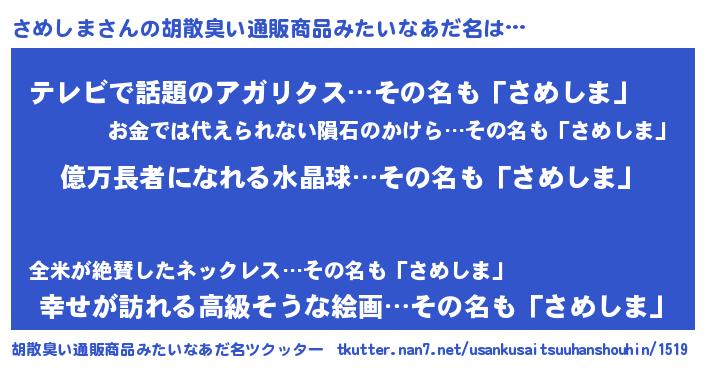 | ヘコむあだ名 | 『さめにゅー』『なまこ酢』『さめを』 |