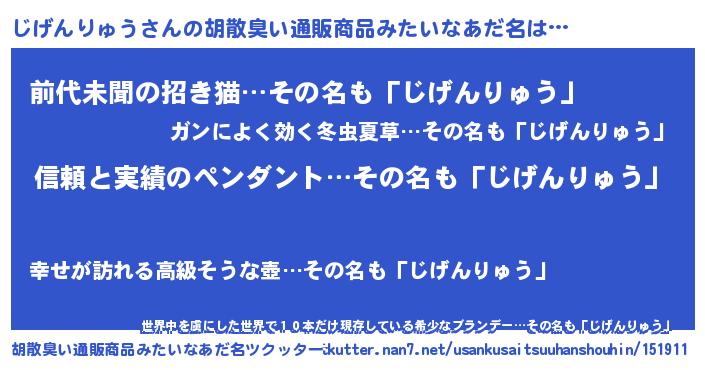 | 意味不明あだ名 | 『とにかく怪しいじげんりゅう』 |