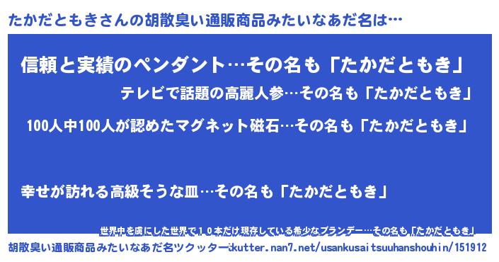 | 意味不明あだ名 | 『眠気覚ましガムたかだともき味』 |