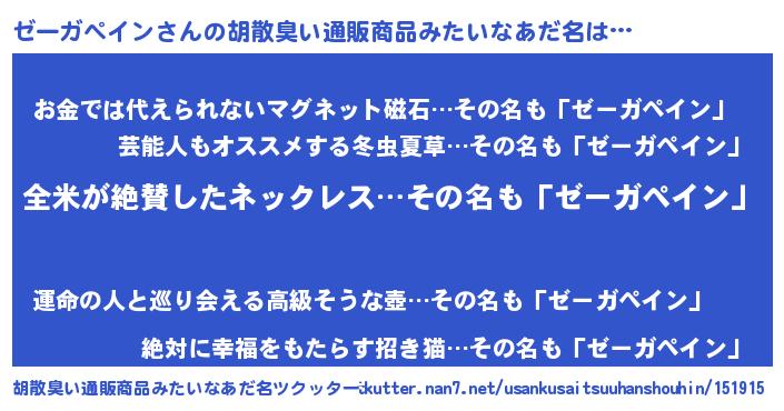 | 男性向けラノベタイトル風あだ名 | 『うちのゼーガペインが世界を掌握している!』 |