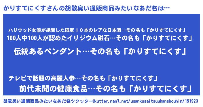 | 意味不明あだ名 | 『とにかく怪しいかりすてにくす』 |