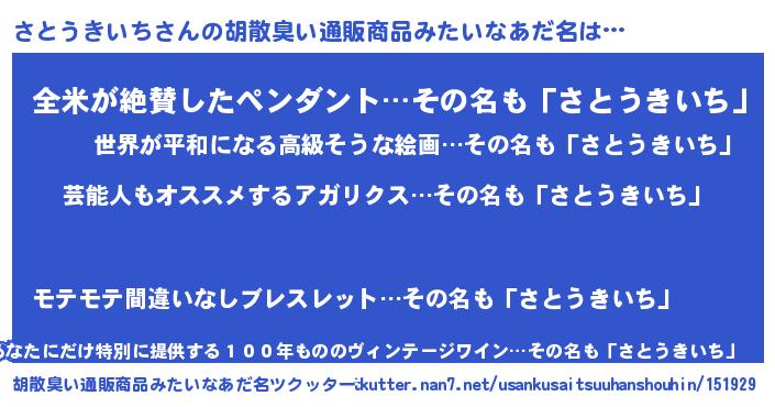 | 意味不明あだ名 | 『自称さとうきいち』 |