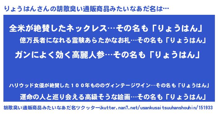 | ピコ太郎風あだ名 | 『リョ一郎』『ピリ二郎』『リコ三郎』 |