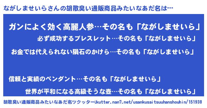 | 欧米人風あだ名 | 『アンジェラ・ながしませいら』 |