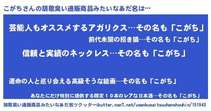 | ヘコむあだ名 | 『こがっ子』『こがち(爆)』 |