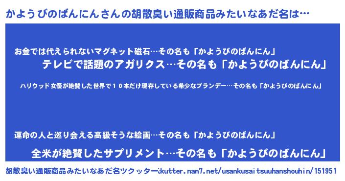 | 欧米人風あだ名 | 『ダレノガレかようびのばんにん』 |