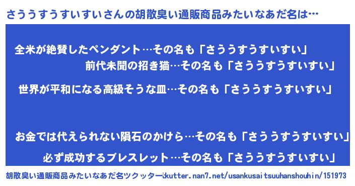 | 意味不明あだ名 | 『さううすうすいすいフォーエバー』 |