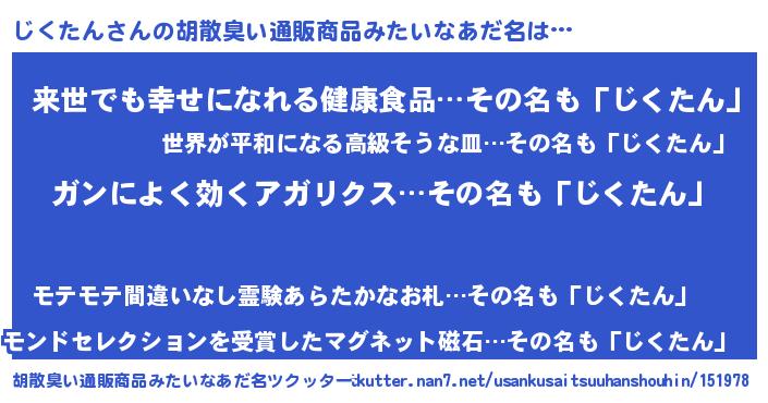 | 意味不明あだ名 | 『めかぶ科じくたん属』『自称じくたん』 |