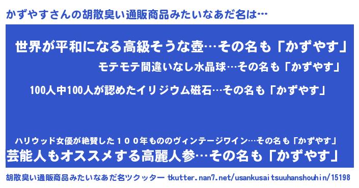 | ヘコむあだ名 | 『つくし』『かずふぇ~』『かずを』 |