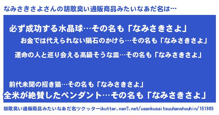 | 恥ずかしいあだ名 | 『なみっちょ』『プリティーなみさきさよ』 |