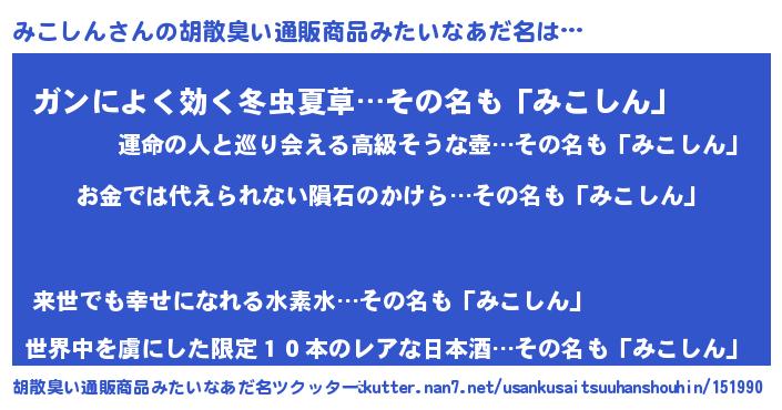 | 男性向けラノベタイトル風あだ名 | 『転生したらみこしんだった件』 |