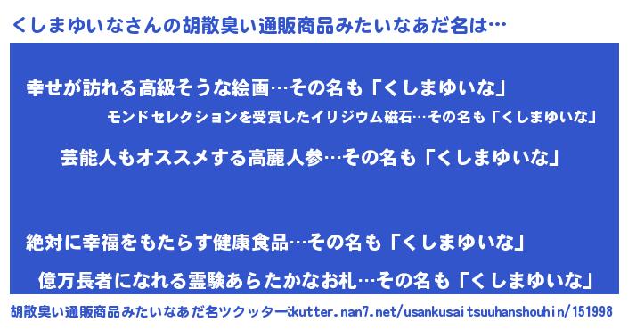 | 恥ずかしいあだ名 | 『クシマユイナデラックス』『くしっちょ』 |